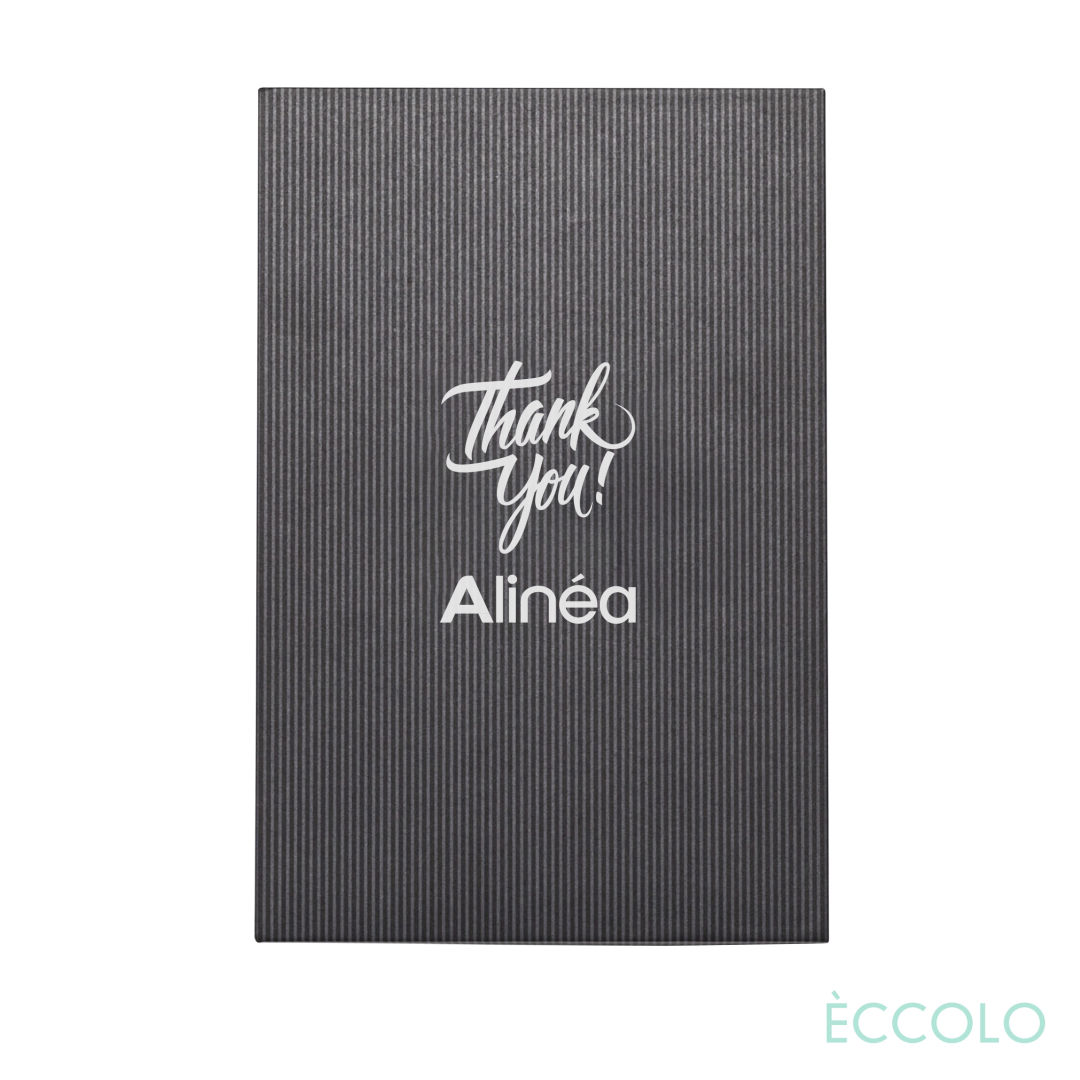 Be kind to the environment with the Eccolo® Krafty Journal. Made from recycled paper and a recyclable cover, this premium, eco-friendly journal offers a guilt-free solution to all your journal needs. The Krafty Journal & Lucky Pen Gift Set features…- P2373 Lucky Pen: Click action ballpoint pen made from Eco-friendly bamboo.- Black die-cut foam Gift Box- Heavy, hard cover made from 100% recycled paper- 140 white-lined pages- Elastic Band Closure-colored- FSC Certified 80 gram paper- White end pages- Journal size: 5.75″ x 8.25″. 5.75″ W x 8.25″ H